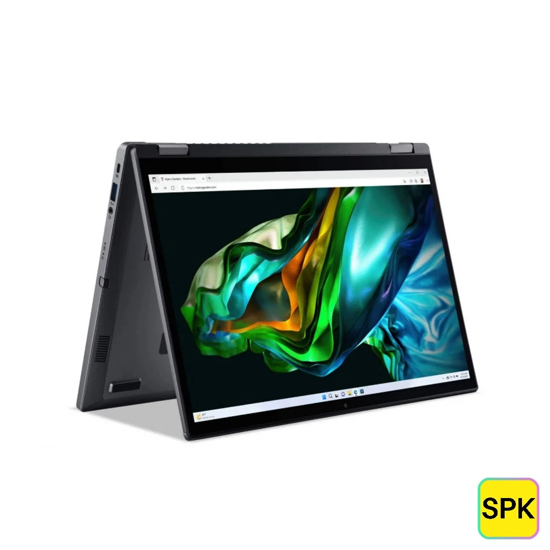 The Acer Spin 5 2023 (model Spin 5-72SG) is a versatile and elegant 2-in-1 convertible laptop designed for productivity and creative tasks with a touchscreen interface. It features a vibrant 14-inch WUXGA (1920 x 1200) IPS multi-touch display with support for AES stylus pen, ideal for note-taking and drawing. Powered by 13th Gen Intel Core Ultra processors like the Core i7-1355U and Core i5-1335U, it delivers excellent performance with up to 10 cores and fast multitasking capabilities. The laptop balances power and portability with a sleek design and lightweight build around 1.6 kg.