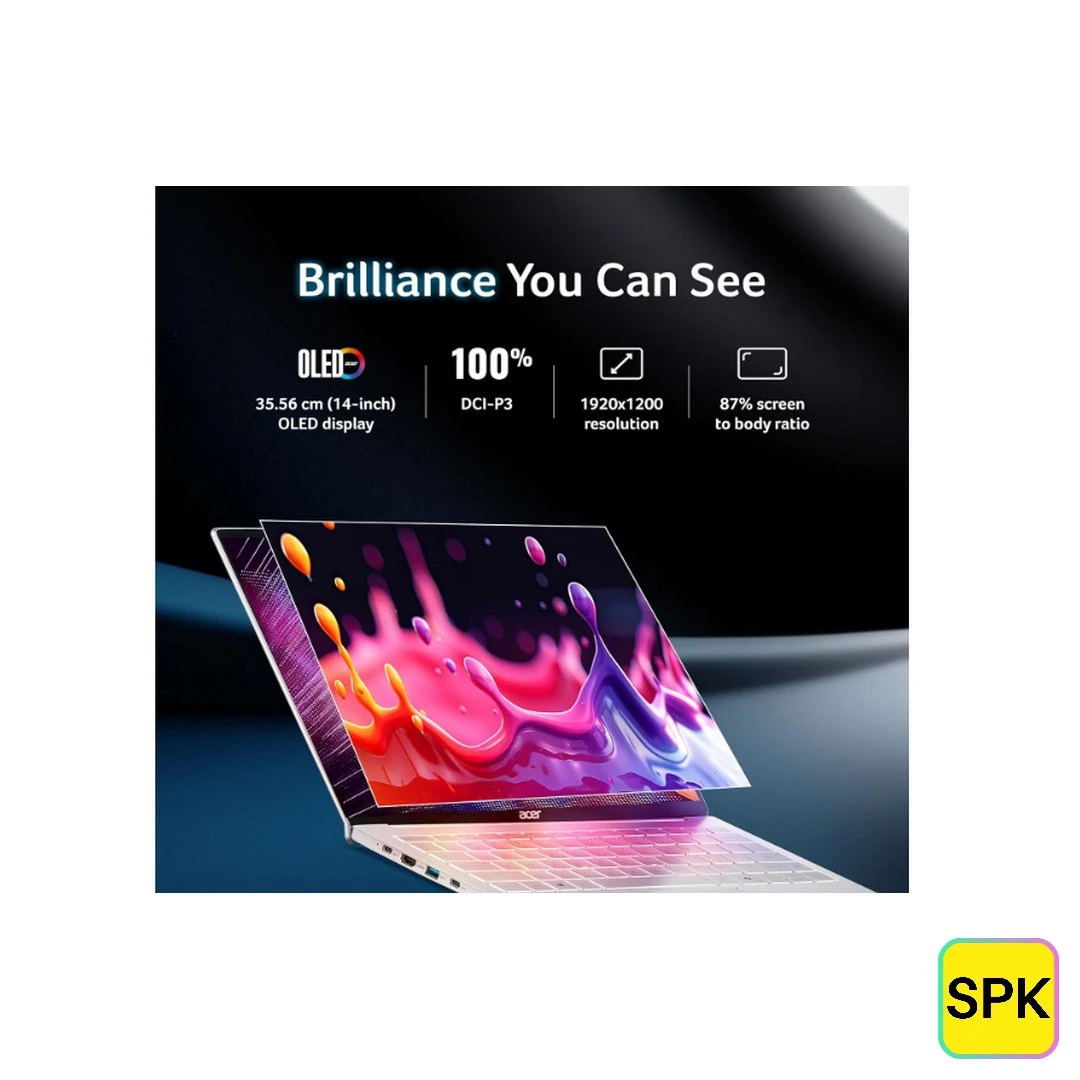 | Display | 14-inch WUXGA OLED (1920 x 1200), 100% DCI-P3, Acer CineCrystal, True Black HDR 500 |