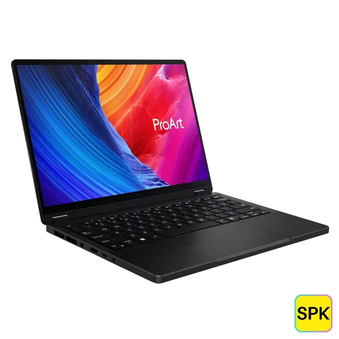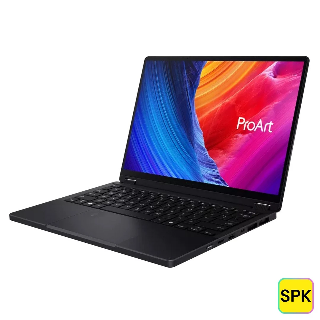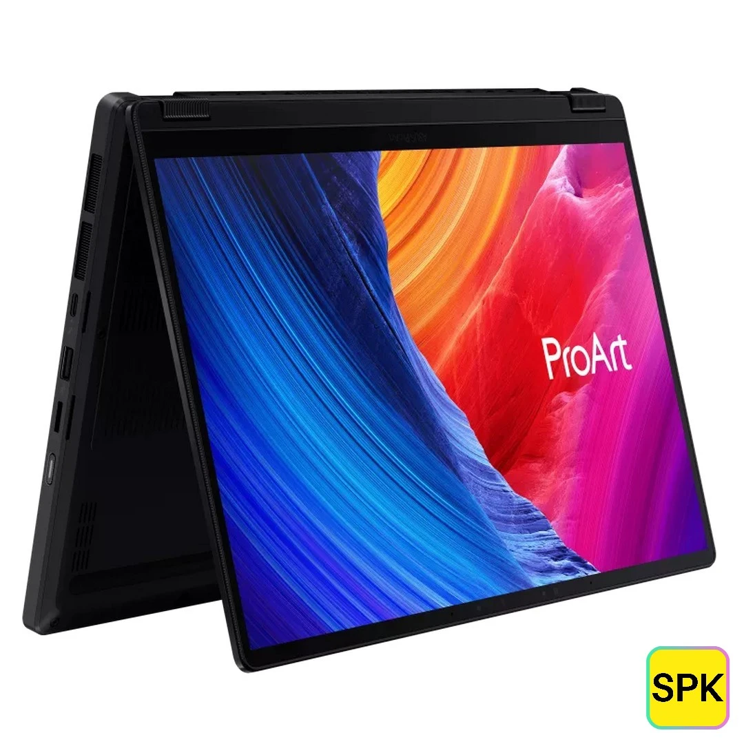 The Asus ProArt PX13 OLED 2024 (HN7306WU-LX014W) is a 13.3-inch convertible “creator-class” laptop aimed at artists, designers, video editors, data professionals, and anyone needing a powerful, portable workstation with superb display fidelity. It combines a color-accurate 3K OLED touchscreen (2880×1800, 16:10) with a potent hardware setup — an AMD Ryzen AI 9 HX 370 processor (with integrated XDNA NPU), discrete NVIDIA GeForce RTX 4050 GPU, 24 GB LPDDR5X RAM and fast NVMe SSD storage. The compact 2-in-1 chassis (≈ 1.38 kg) supports multiple usage modes (laptop, tablet, tent, stand), and includes stylus support, making the PX13 ideal for creative work, data visualization, coding, content creation, or portable workstation tasks. With Windows 11, Wi-Fi 7, modern I/O, and creator-focused software (color-calibrated OLED, stylus & touch, Dolby/Smart-Amp audio), this machine aims to offer a “power-wherever-you-go” platform for creators and professionals.