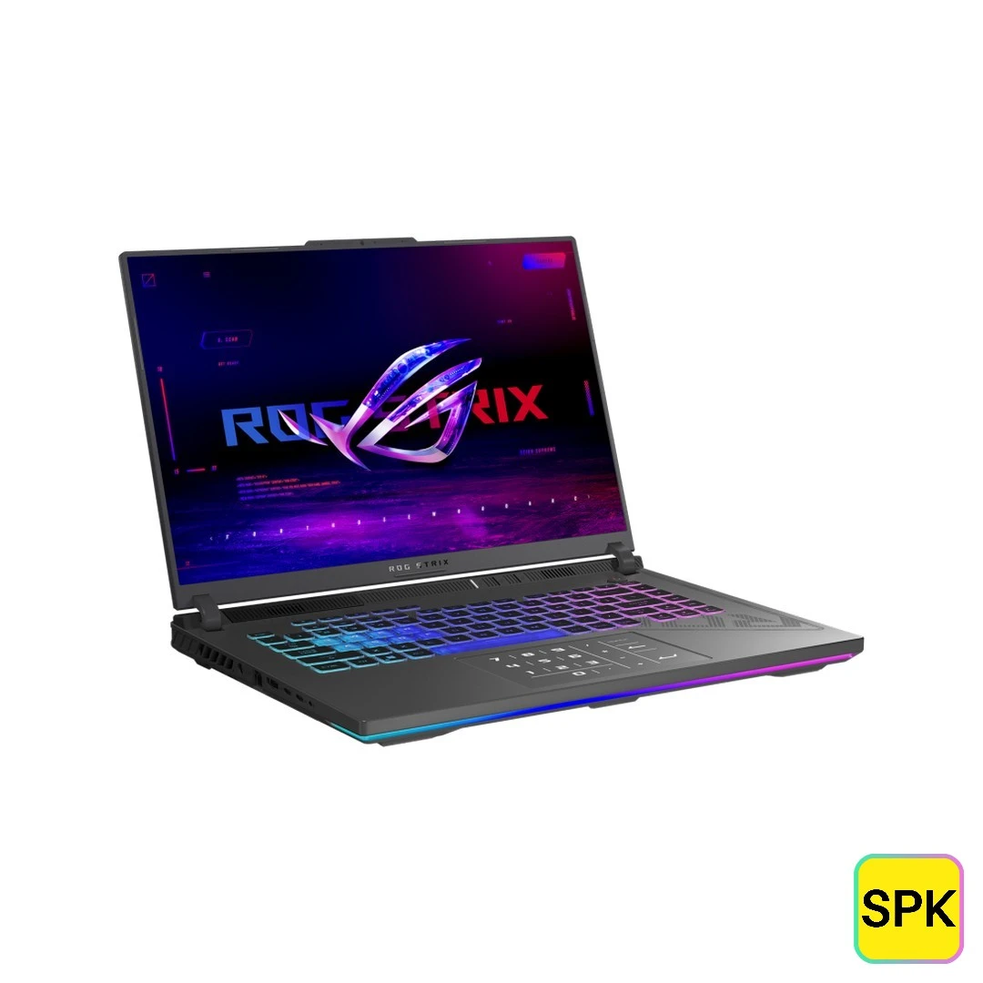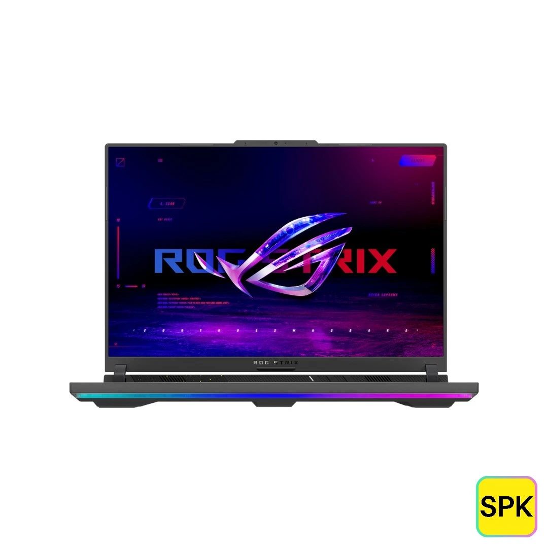 The ROG Strix G16 2023 (G614JI) is a 16-inch gaming-class laptop aimed at users who want high CPU power, a capable GPU, and a large screen — suited for gaming, video editing, 3D work, development, or heavy multitasking. The G614JI configuration typically pairs a 13th-Gen Intel Core i9-13980HX (24-core / up to 5.6 GHz) with a discrete NVIDIA GeForce RTX 4070 Laptop GPU (8 GB GDDR6), offering plenty of headroom for modern AAA gaming, GPU-accelerated workloads, rendering, and compute tasks. With a 16″ WUXGA (1920×1200) 165 Hz IPS display (or higher-end display variant depending SKU), dual-slot DDR5 RAM, 1 TB PCIe 4.0 SSD, robust I/O (USB-C/Thunderbolt, HDMI 2.1, LAN), a 90 Wh battery, and a durable ROG-series chassis — it balances high performance and versatility, making it a strong “power-user + gaming + creative” all-rounder.
