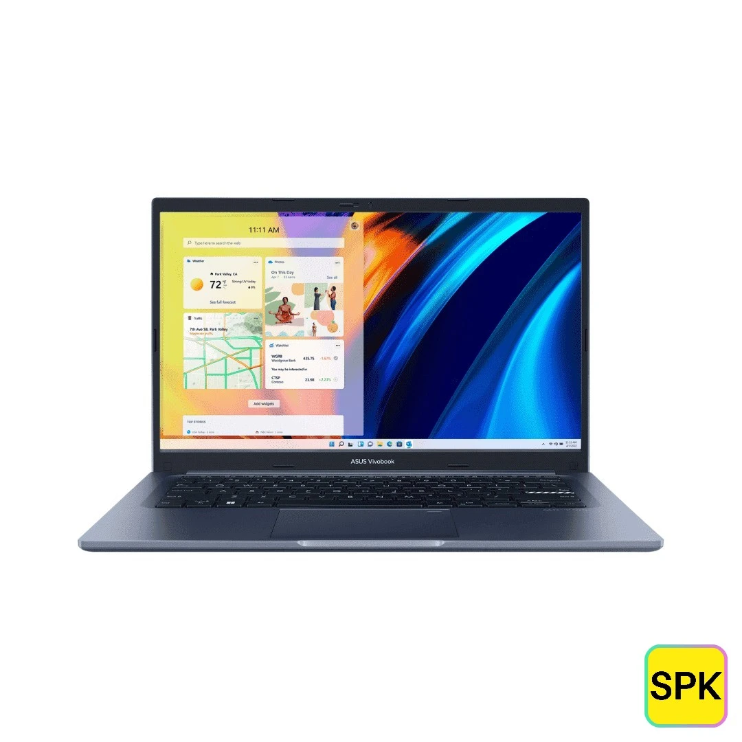 The Asus Vivobook 14 2021/2022 (X1402ZA) is a lightweight, everyday laptop designed for productivity and portability, featuring a 14-inch FHD IPS LCD display with 1920 x 1080 resolution, 60Hz refresh rate, 220-250 nits brightness, 45% NTSC color gamut, and anti-glare coating. It is powered by 12th Gen Intel Core processors such as i3-1215U/i3-1220P, i5-1240P, paired with Iris Xe Graphics depending on the configuration. Common variants include 8GB DDR4 onboard RAM (upgradable to 16GB via SO-DIMM slot) and 256GB/512GB M.2 NVMe PCIe SSD storage, with expansion slots for additional RAM and M.2 PCIe 4.0 storage. The laptop includes a 720p HD webcam with privacy shutter, SonicMaster audio with built-in speakers and array microphone, and a chiclet keyboard with 1.4mm key travel, optional backlit, and precision touchpad with fingerprint sensor. It supports Wi-Fi 6 (802.11ax) dual-band and Bluetooth 5.3, with ports including USB 2.0 Type-A, USB 3.2 Gen1 Type-A/C, HDMI 1.4, and 3.5mm combo jack. A 42Wh 3-cell Li-ion battery powers the device, paired with a 65W AC adapter. Weighing around 1.4-1.6 kg, it runs Windows 11 Home and features security like BIOS password, TPM, and McAfee. Available in colors like Quiet Blue, IceLight Silver.