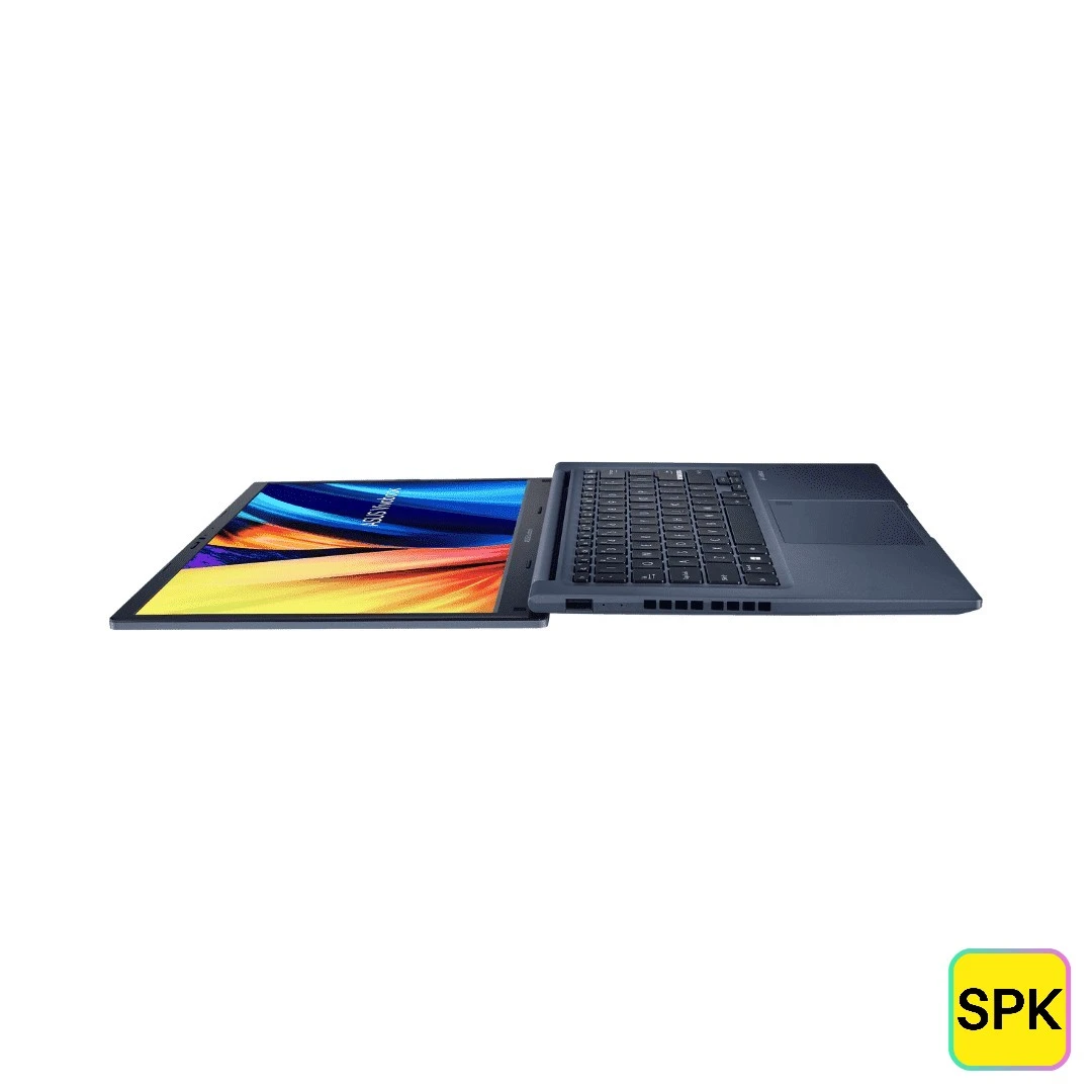 The Asus Vivobook 14 2021/2022 (X1404ZA) is a lightweight, everyday laptop designed for productivity and portability, featuring a 14-inch FHD IPS LCD display with 1920 x 1080 resolution, 60Hz refresh rate, 220-250 nits brightness, 45% NTSC color gamut, and anti-glare coating. It is powered by 12th Gen Intel Core processors such as i3-1215U/i3-1220P, i5-1240P, paired with Iris Xe Graphics depending on the configuration. Common variants include 8GB DDR4 onboard RAM (upgradable to 16GB via SO-DIMM slot) and 256GB/512GB M.2 NVMe PCIe SSD storage, with expansion slots for additional RAM and M.2 PCIe 4.0 storage. The laptop includes a 720p HD webcam with privacy shutter, SonicMaster audio with built-in speakers and array microphone, and a chiclet keyboard with 1.4mm key travel, optional backlit, and precision touchpad with fingerprint sensor. It supports Wi-Fi 6 (802.11ax) dual-band and Bluetooth 5.3, with ports including USB 2.0 Type-A, USB 3.2 Gen1 Type-A/C, HDMI 1.4, and 3.5mm combo jack. A 42Wh 3-cell Li-ion battery powers the device, paired with a 65W AC adapter. Weighing around 1.4-1.6 kg, it runs Windows 11 Home and features security like BIOS password, TPM, and McAfee. Available in colors like Quiet Blue, IceLight Silver.