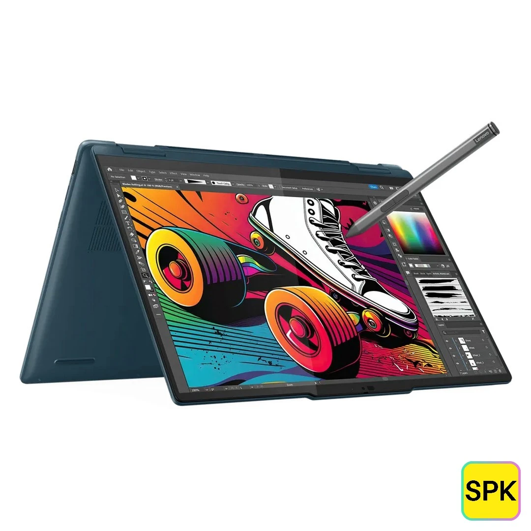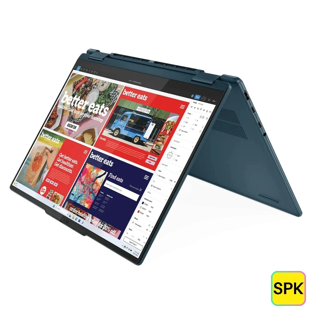 The Lenovo Yoga 7 (14IML9) 2024 2-in-1 is a premium convertible laptop featuring up to 14th Gen Intel Core Ultra 5 and 7 processors from the H and U series, designed for power users seeking flexibility and high performance. It sports a vibrant 14-inch WUXGA IPS multi-touch display with 300 nits brightness and full sRGB color gamut, delivering crisp visuals and a smooth user experience. With up to 32GB soldered LPDDR5x RAM and 1TB PCIe Gen 4 NVMe SSD, it offers excellent multitasking capabilities and fast storage. The laptop's sleek aluminium chassis and versatile 360-degree hinge make it ideal for creative professionals and everyday productivity.