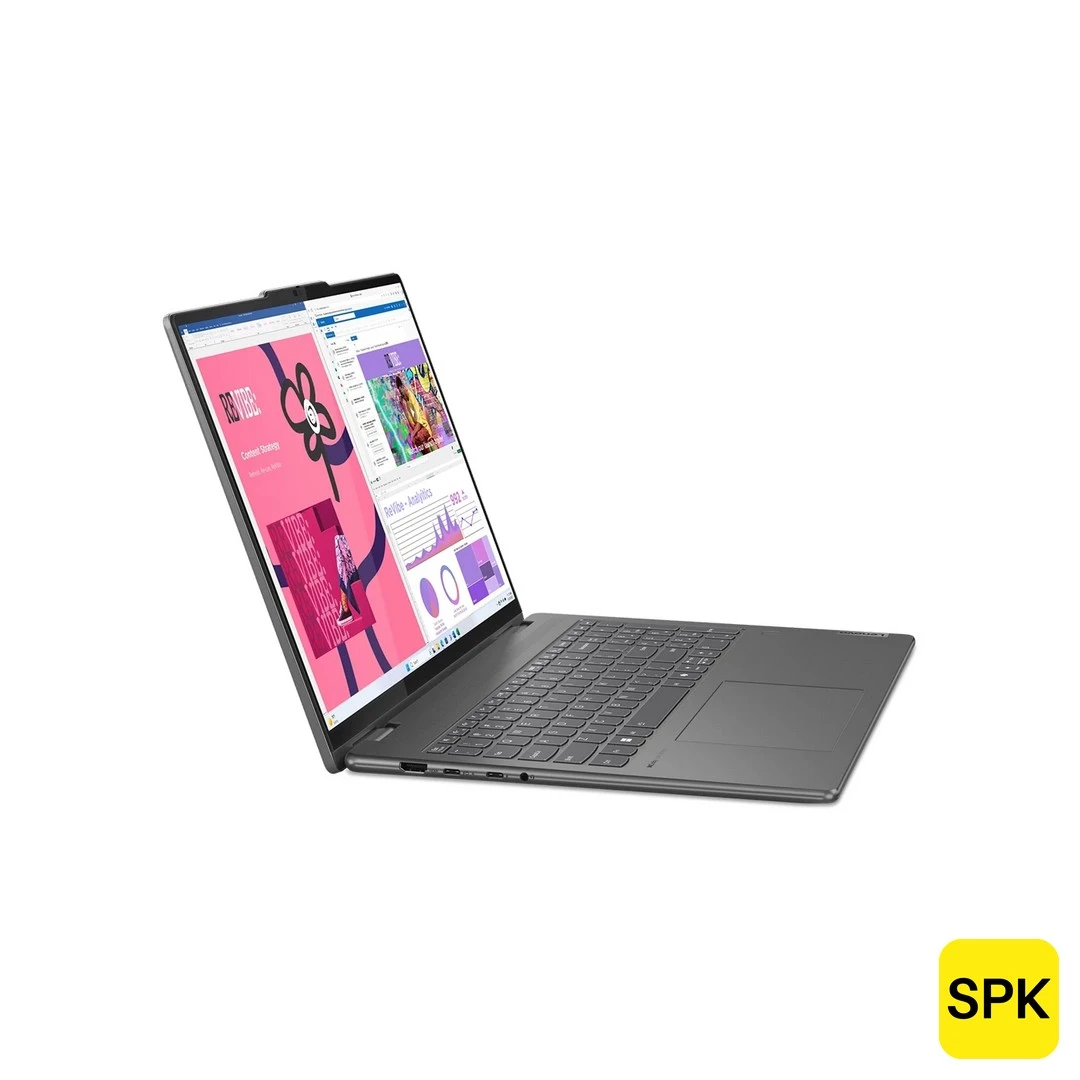 The Lenovo Yoga 7 (16IML9) 2024 2-in-1 is a powerful and sleek convertible laptop designed for versatile productivity with the 14th Gen Intel Core Ultra 5 and 7 processors from both H and U series. It features a spacious 16-inch WUXGA (1920 x 1200) IPS multi-touch display with 300 nits brightness, Dolby Vision, and a 16:10 aspect ratio for immersive and sharp visuals. Equipped with 16GB soldered LPDDR5x RAM and up to 1TB PCIe Gen 4 NVMe SSD, it delivers excellent multitasking and swift data access. The premium aluminium chassis and flexible 360-degree hinge make it ideal for creative professionals, students, and everyday users who value performance and portability.