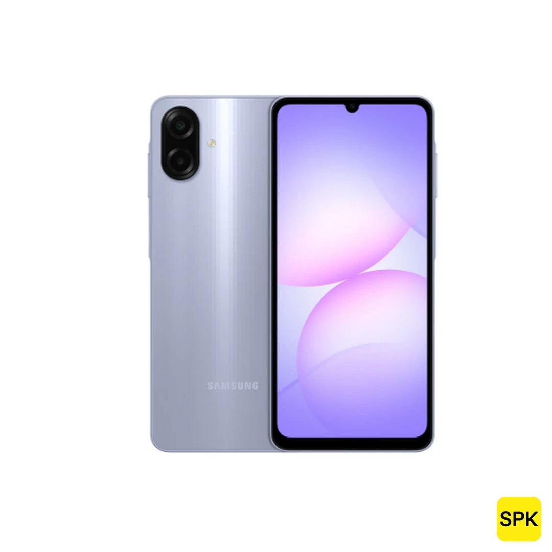 The Samsung Galaxy A07 (2025) is an entry-level smartphone featuring a 6.7-inch PLS LCD display with HD+ resolution and a 90Hz refresh rate. It is powered by the MediaTek Helio G99 chipset with up to 6GB RAM, providing decent performance for everyday use. The device comes equipped with a dual rear camera setup consisting of a 50MP main sensor and a 2MP macro lens, along with an 8MP front camera. It houses a 5000mAh battery supporting 25W fast charging and offers IP54-rated dust and splash resistance. Running on Android 15 with One UI 7, the Galaxy A07 aims to provide a balanced experience at an affordable price point.