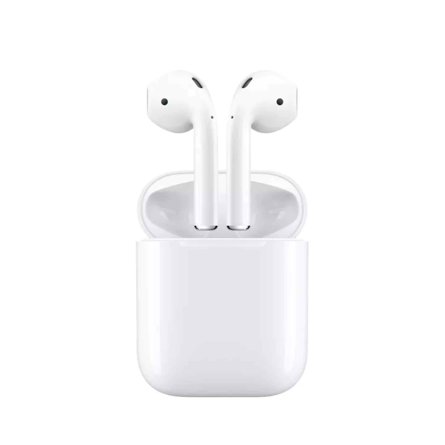 The Apple AirPods (2nd Generation), released in 2019, are wireless earbuds designed for seamless integration with Apple devices. Powered by the H1 chip, they deliver high-quality audio, stable Bluetooth 5.0 connectivity, and hands-free "Hey Siri" functionality. With dual beamforming microphones and optical sensors, these AirPods enhance call quality and provide intuitive controls. They offer up to 5 hours of listening time on a single charge, with more than 24 hours of total battery life via the charging case. The earbuds support quick charging and feature a universal fit design that is lightweight and portable.