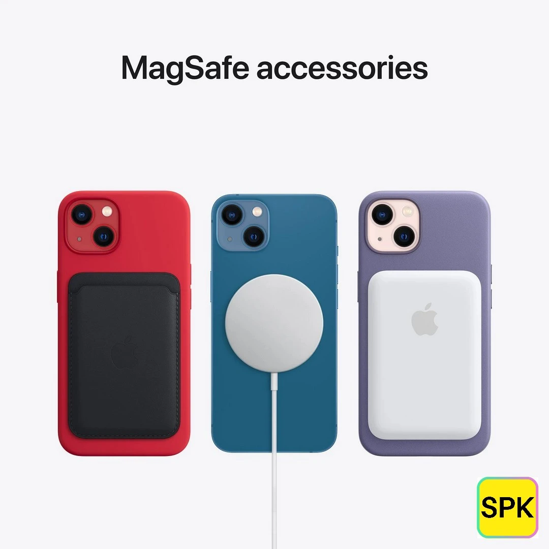 The iPhone 13 offers up to 19 hours of video playback, powered by an efficient battery. It supports 20W fast charging, MagSafe wireless charging (15W), and Qi wireless charging (7.5W).