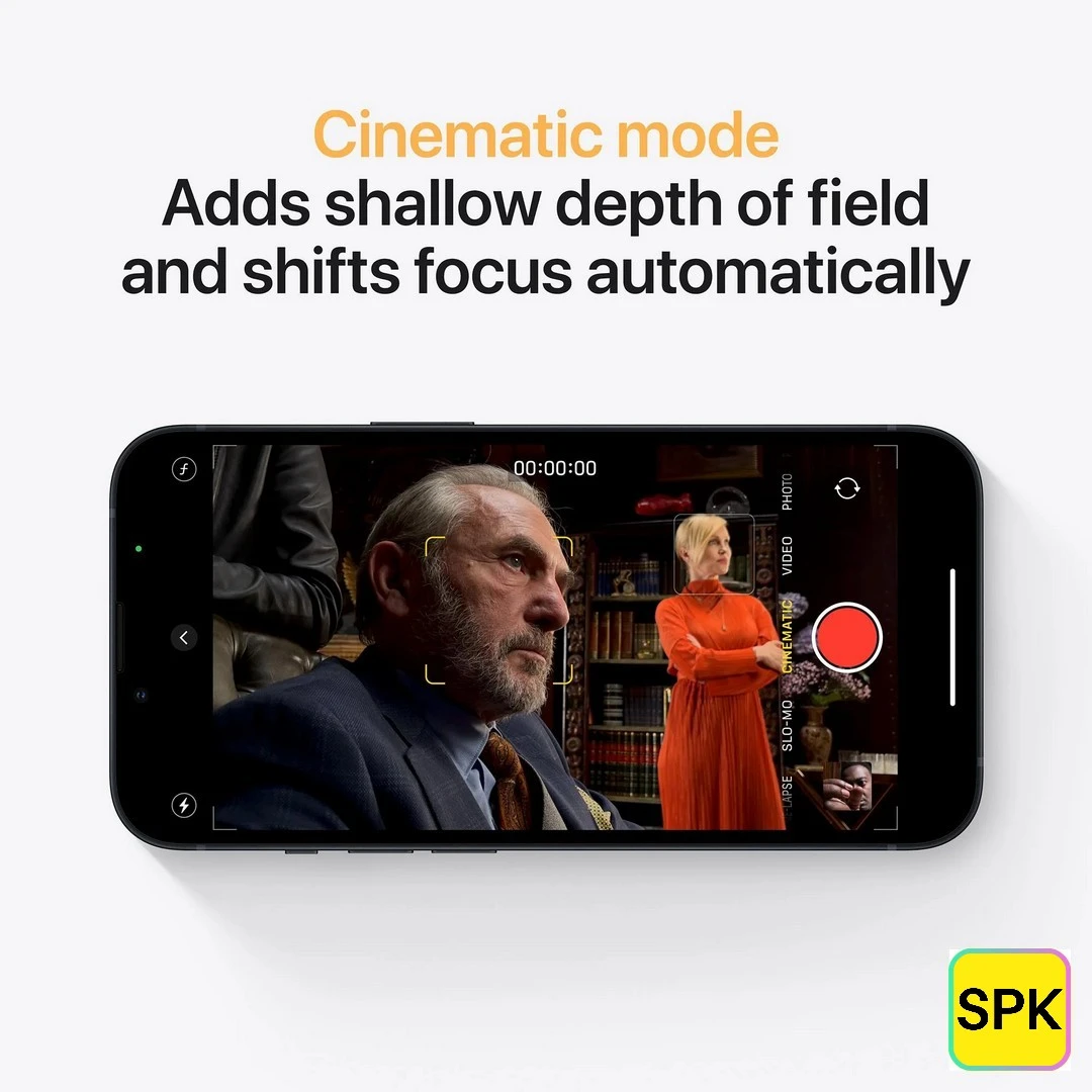 Equipped with a dual 12 MP camera system (Wide and Ultra-Wide), it captures detailed photos with improved low-light performance. It supports Cinematic Mode, Photographic Styles, and Smart HDR 4 for professional-level results. The 12 MP TrueDepth camera supports Night Mode, 4K Dolby Vision HDR recording, and Face ID, ensuring both quality selfies and secure authentication.