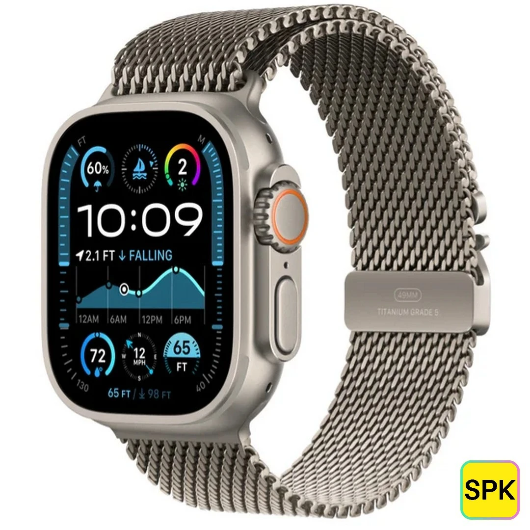 The Apple Watch Ultra 2, released in September 2023, is a rugged and highly capable smartwatch designed for outdoor adventurers and athletes. Featuring a large 49mm titanium case and a 1.92-inch OLED LTPO2 Retina display with 410 x 502 resolution, it delivers bright and clear visuals even in extreme conditions. Powered by Apple’s S9 SiP with a 64-bit dual-core processor and 4-core Neural Engine, it offers improved performance and efficiency. The Ultra 2 includes advanced health and fitness features, endurance-focused sensors, robust 36-hour battery life (extendable to 72 hours in Low Power Mode), and comprehensive connectivity options including 5G cellular and satellite emergency communication.