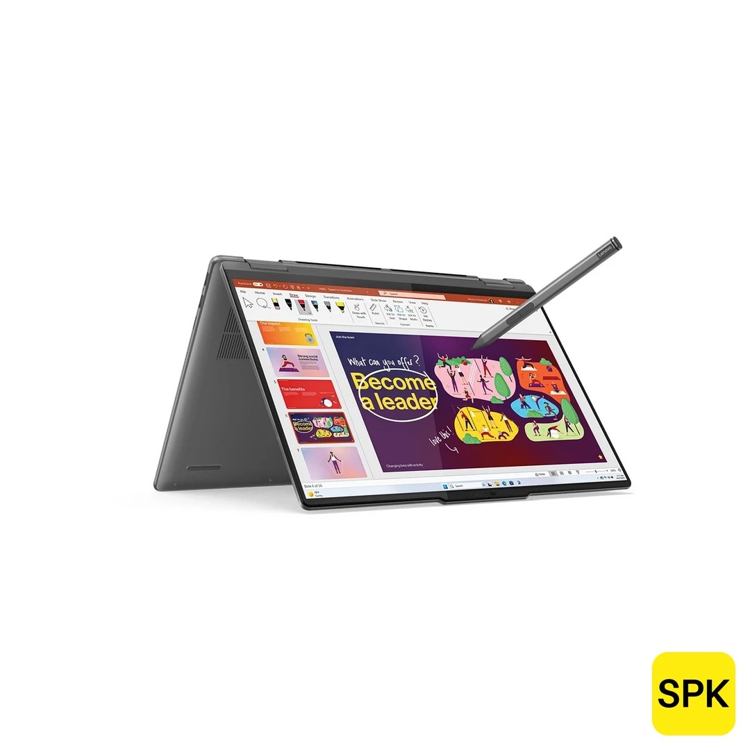 The Lenovo Yoga 7 (16IML9) 2024 2-in-1 is a powerful and sleek convertible laptop designed for versatile productivity with the 14th Gen Intel Core Ultra 5 and 7 processors from both H and U series. It features a spacious 16-inch WUXGA (1920 x 1200) IPS multi-touch display with 300 nits brightness, Dolby Vision, and a 16:10 aspect ratio for immersive and sharp visuals. Equipped with 16GB soldered LPDDR5x RAM and up to 1TB PCIe Gen 4 NVMe SSD, it delivers excellent multitasking and swift data access. The premium aluminium chassis and flexible 360-degree hinge make it ideal for creative professionals, students, and everyday users who value performance and portability.