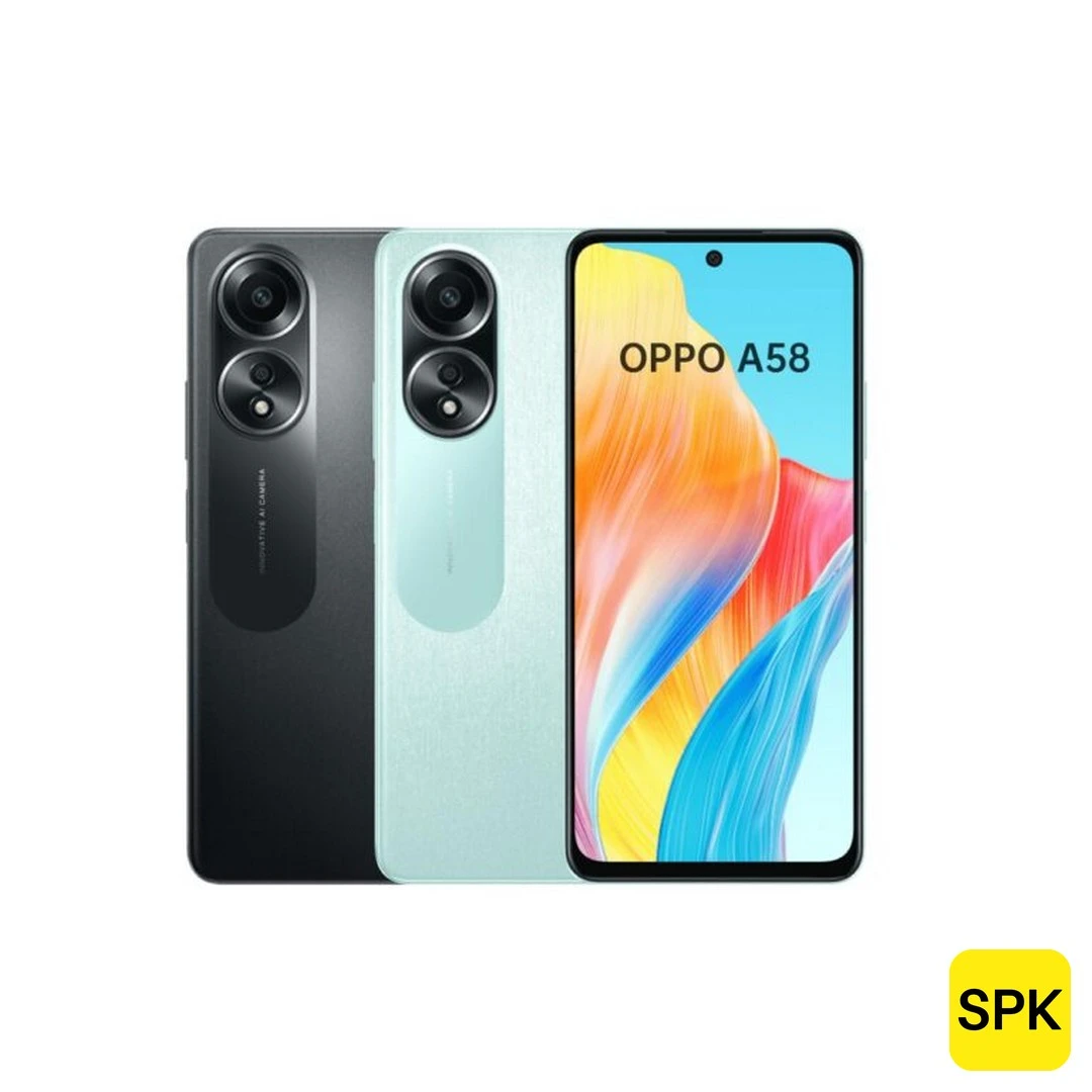 The OPPO A58 4G, released in July 2023, is a budget smartphone featuring a 6.72-inch IPS LCD display with Full HD+ resolution and a 90Hz refresh rate. It is powered by the MediaTek Helio G85 chipset with 6GB RAM and storage of 128GB, expandable via microSD. The device has a dual rear camera setup with a 50MP main sensor and a 2MP depth sensor, plus an 8MP front camera for selfies. It features a 5000mAh battery with 33W fast charging support, stereo speakers, IP54 water and dust resistance, and runs Android 13 with ColorOS 15.