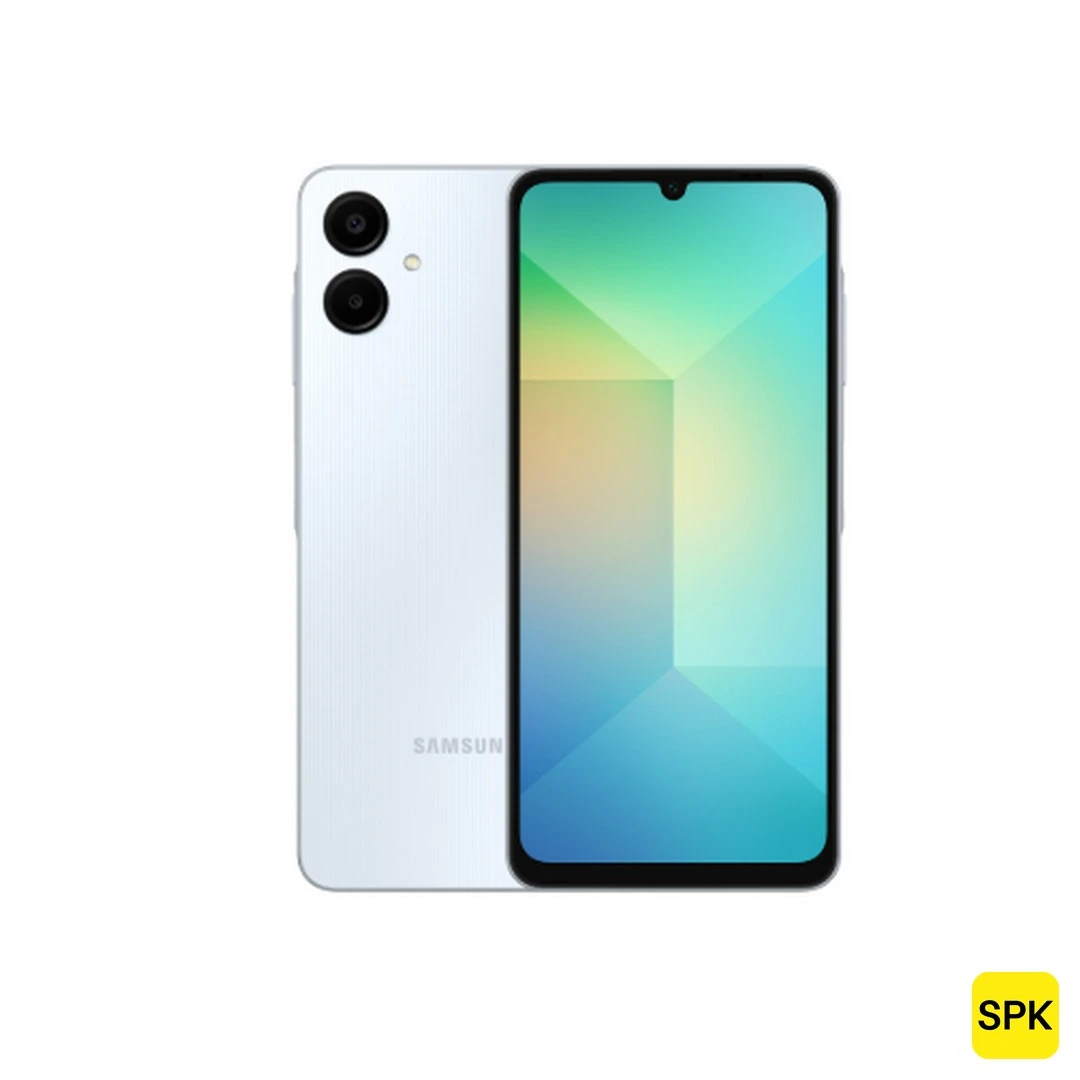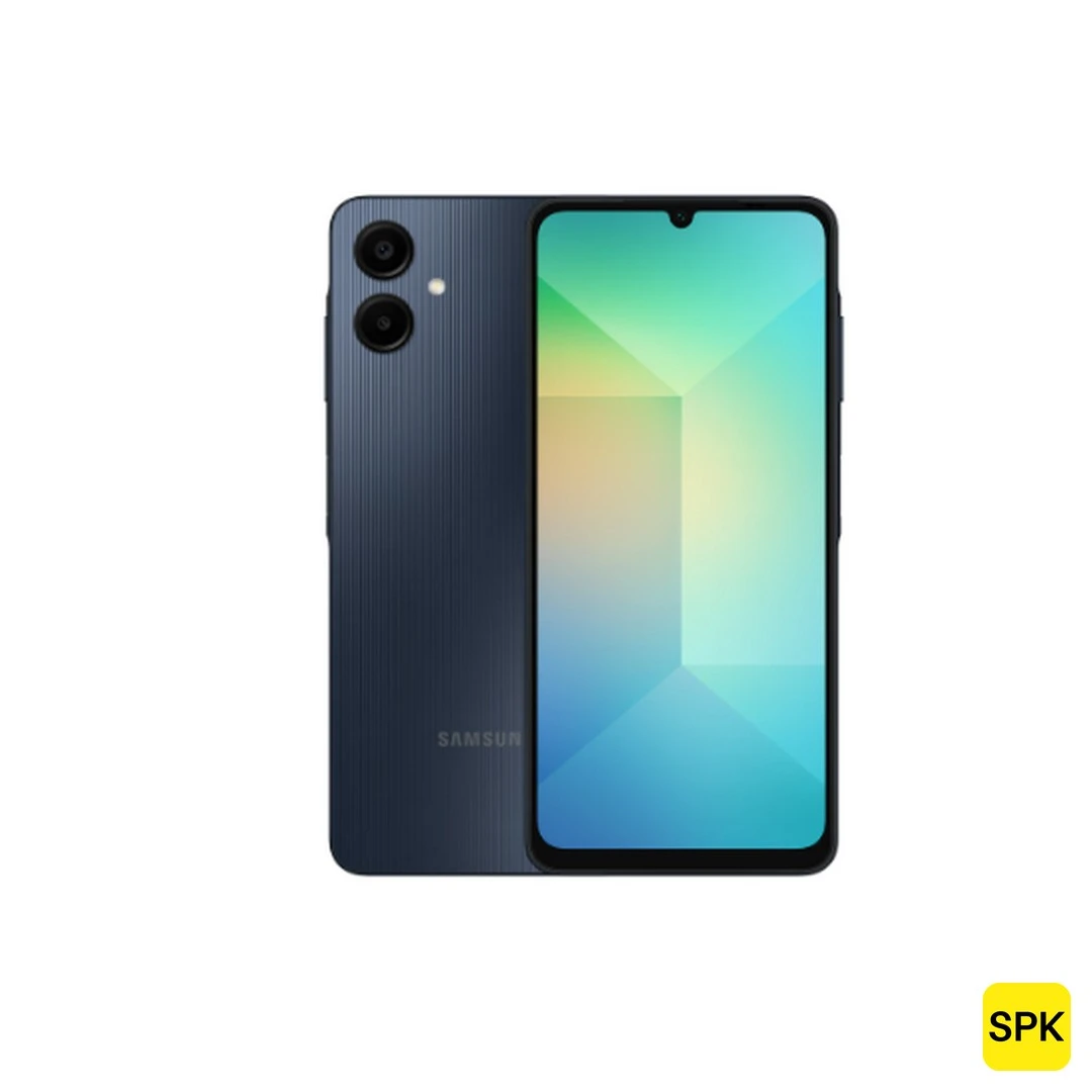 The Samsung Galaxy A06 (2025) is an affordable budget smartphone featuring a 6.7-inch HD+ PLS LCD display with a 60Hz refresh rate. It is powered by the MediaTek Helio G85 chipset paired with 4GB or 6GB RAM, suitable for basic daily tasks and light multitasking. The device includes a dual rear camera setup with a 50MP main sensor and a 2MP depth sensor, alongside an 8MP front camera. It has a large 5000mAh battery with 25W fast charging support. Running Android 14 with One UI Core, the phone has a plastic frame and back and offers side-mounted fingerprint security.
